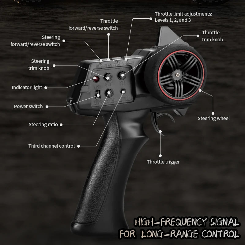10.the remote control panel adopts the knob type steering micro-adjustment knob, throttle micro-adjustment knob, rotary steering ratio knob, the degree of regulation is more accurate, more delicate;